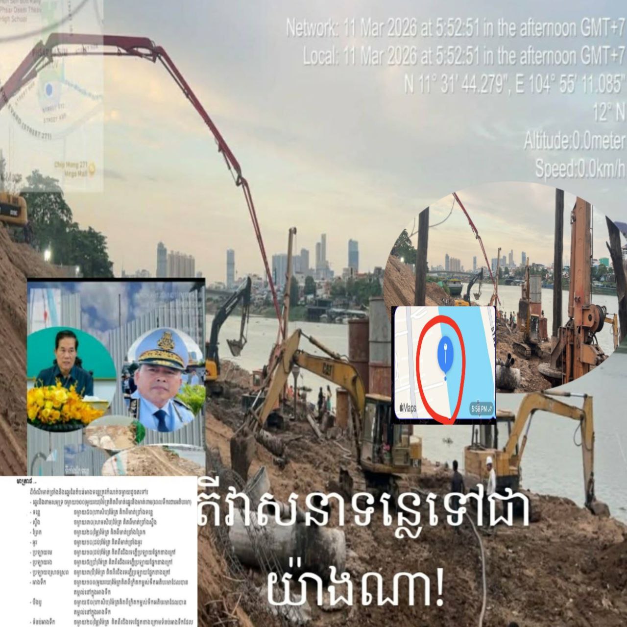រាជធានី /តាមសេចក្តីរាយការណ៍ពីរពលរដ្ឋ កាលពីថ្ងៃទី11 ខែមីនា ឆ្នាំ២០២៦ បានឲ្យដឹងថា មានទីតាំងមួយកន្លែងកំពង់យកអេស្ការ ហៅថាគ្រឿងចក្រចូលគាស់កាយដីចំណីច្រាំងទន្លេសំរាប់បុកគ្រឹះសាងសង់សំណង់រឹង រំលោភបំពានដីចំណីច្រាំងទន្លេ ដែលស្ថិតនៅក្នុង ភូមិព្រែកតានូ សង្កាត់ចាក់អង្រែលើ ខណ្ឌមានជ័យ រាជធានីភ្នំពេញ យ៉ាងរលូន ធ្វើឲ្យពលរដ្ឋនៅក្នុងមូលដ្ឋានមានចម្ងល់ ! បានលើកឡើងជាសំនួរ តើមានច្បាប់អនុញ្ញាតគ្រប់គ្រាន់ឲ្យសាងសង់ដែរ ឬទេ?